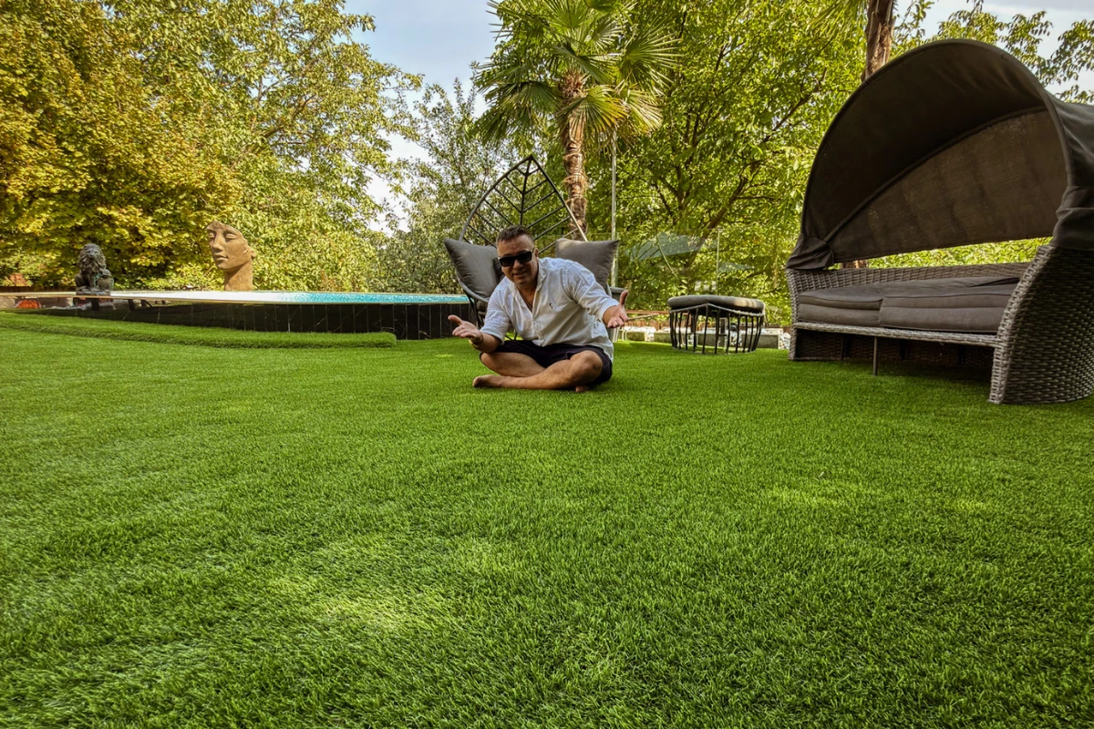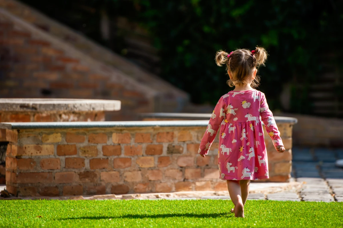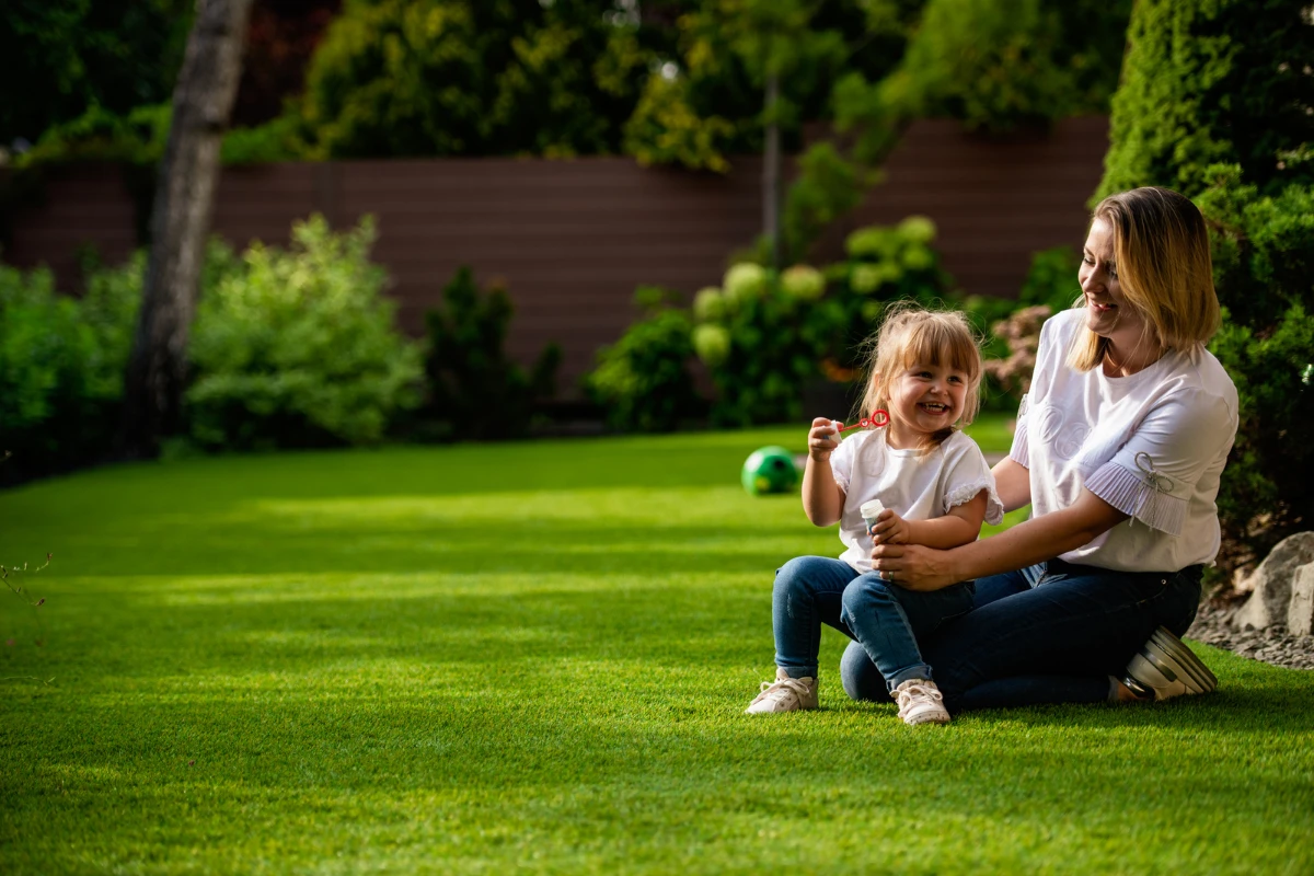 Szülőként az első kérdésed jogosan az: biztonságos-e a gyerekemnek? A válaszunk nem ígéret – hanem tanúsítvány. A prémium holland műfűveink kizárólag EU szabványoknak megfelelő anyagokból készülnek – károsanyag-mentesen, hippoallergén összetétellel. A fűszálak selymesen puhák: a gyerekek hempereghetnek, hason fekve olvashatnak, mezítláb szaladgálhatnak – bőrirritáció és allergia kockázata nélkül. Az antibakteriális tulajdonság gátolja a felszínen a baktériumok szaporodását, a hipoallergén anyagösszetétel pedig azt jelenti: nincs pollen, nincs allergia, szabad légzés egész évben. Az esés? Puha talajra érkezik – nem betonra, nem kavicsra. Eső után 15 perccel már száraz a felszín, sármentes és tisztán tartható – soha többé sáros lábnyom a házban. A gyerekeid egyébért szaladnak be: mert éhesek, nem mert piszkosak.